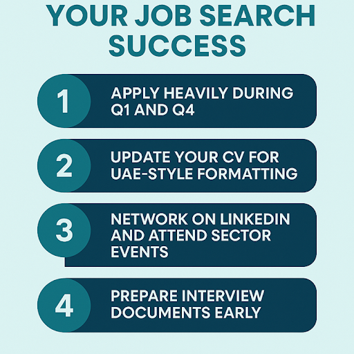 Hiring managers are most active in these months as expatriates relocate and companies finalize strategic initiatives. If you want quicker results, these months should be your primary focus during the Dubai hiring season in 2026.